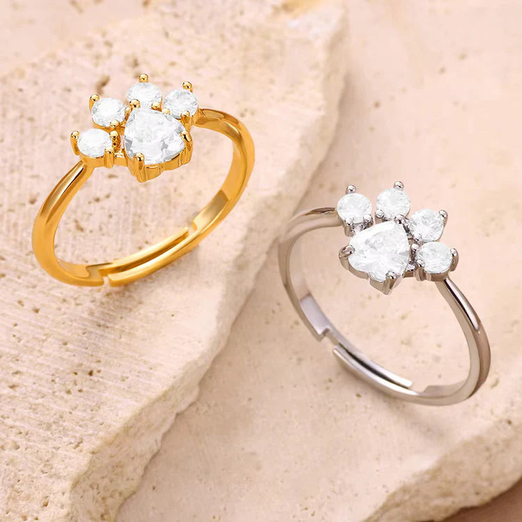 The heart-shaped paw design is delicately carved and set with sparkling zircon stones, giving it a luxurious look while staying true to the playful spirit of your pet.